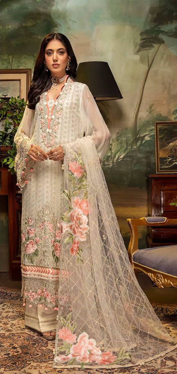 Noor 452 Hit Design Georgette Salwar Suits in White and Salmon Color