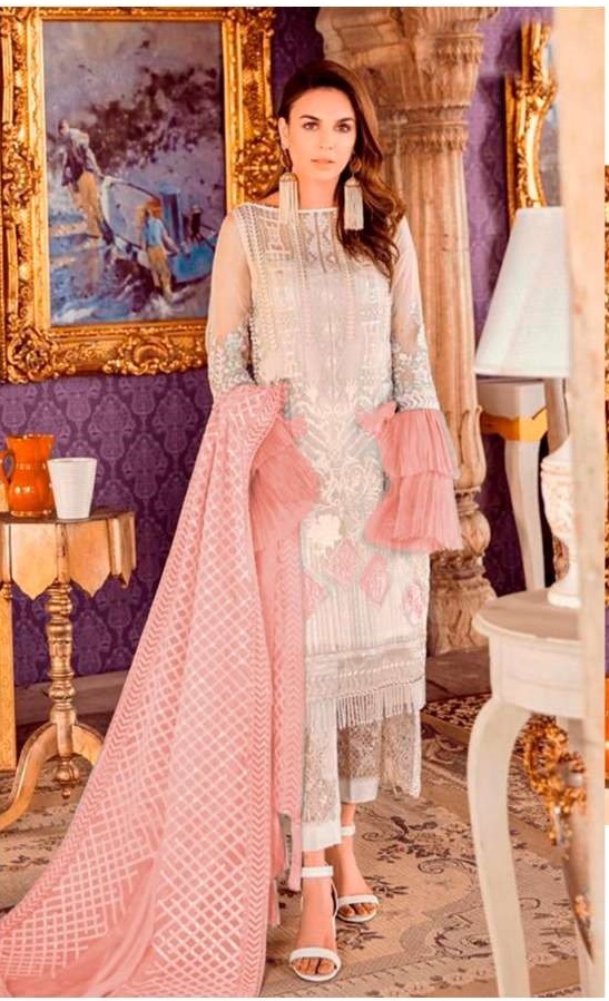Ramsha 192 B by Ramsha Series Semi Stitched Salwar Suits in Silver & Salmon colour