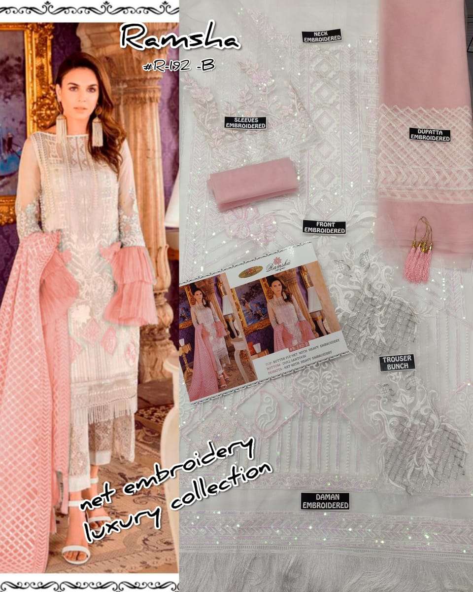 About this product: Ramsha Present 192 B Series Pakistani Beautiful Fancy Colorful Stylish Party Wear Dresses At Wholesale Price. The manufacturer is well known and the quality is pre-tested and checked.