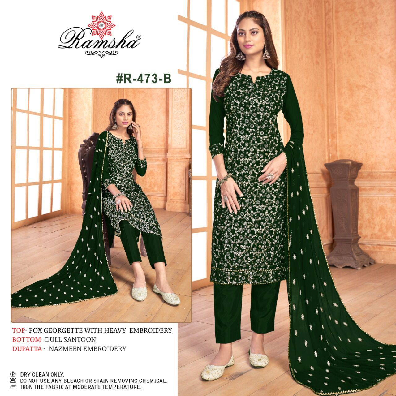 About this product: Ramsha Hit Design R-473-B Series Salwar Suit in Beautiful Fancy Colorful Stylish Party Wear Dresses At Wholesale Price. The manufacturer is well known and the quality is pre-tested and checked.