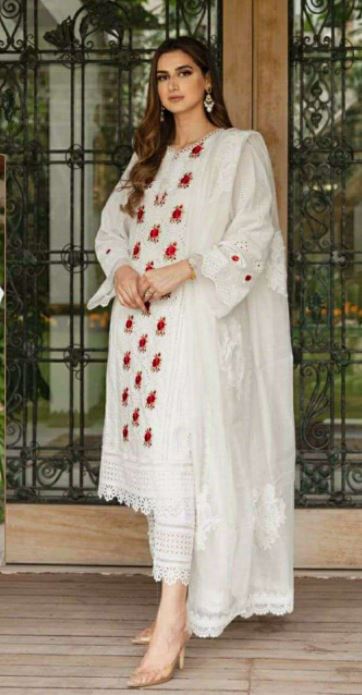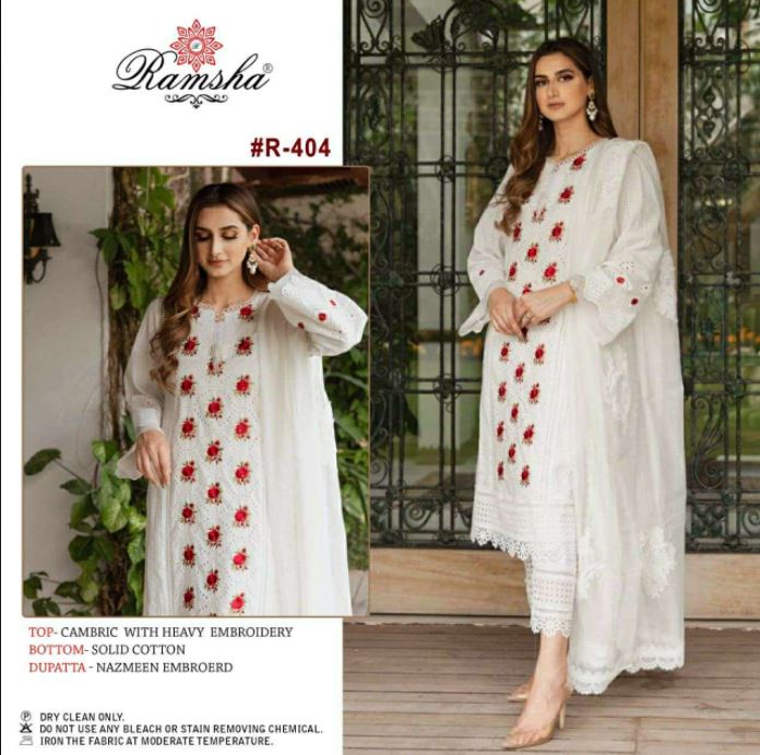 Ramsha Hit Designs 404 By Ramsha Series Salwar Suits In White Colour