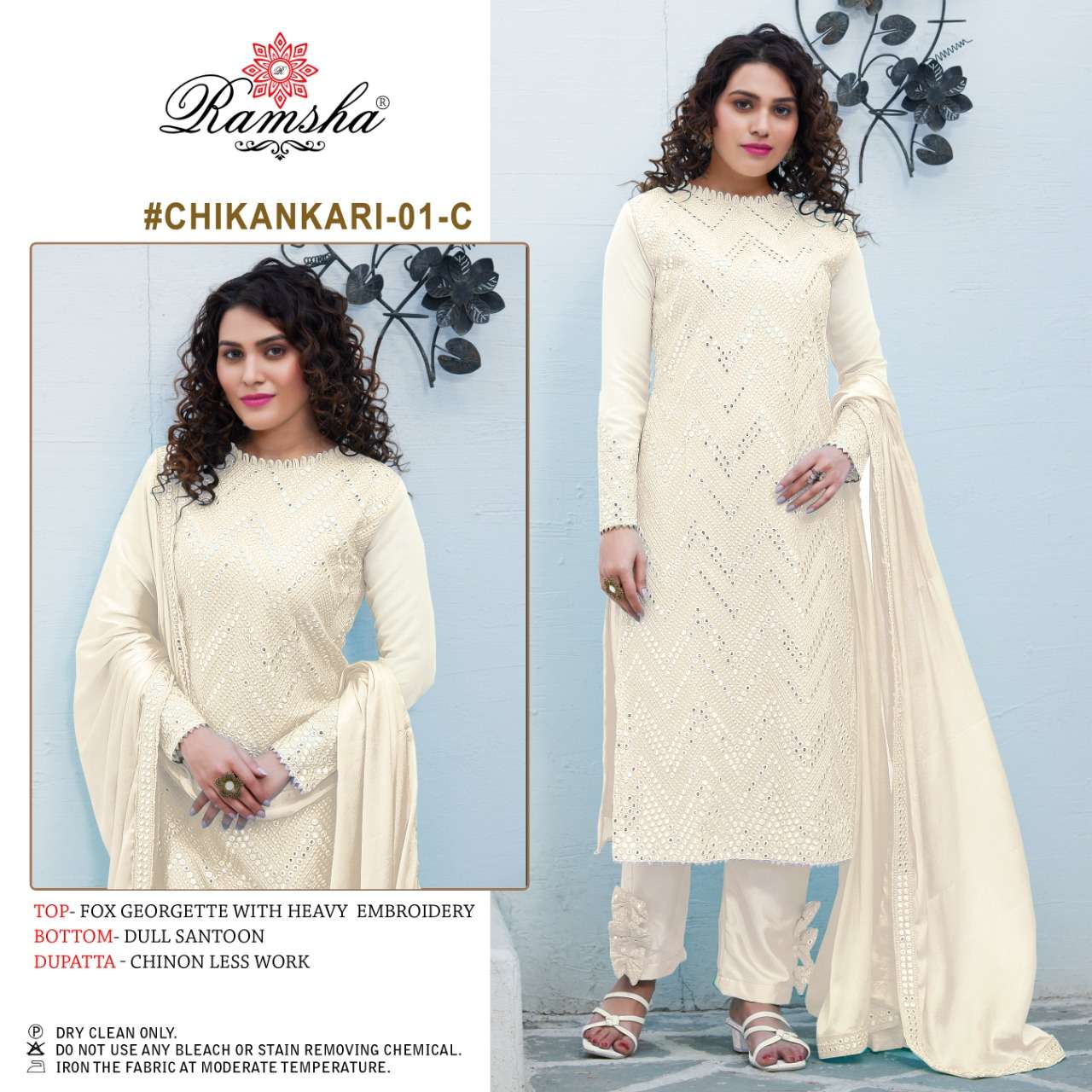 About this product: Ramsha Present Chikankari-01-C Series Salwar Suit in Beautiful Fancy Colorful Stylish Party Wear Dresses At Wholesale Price. The manufacturer is well known and the quality is pre-tested and checked.