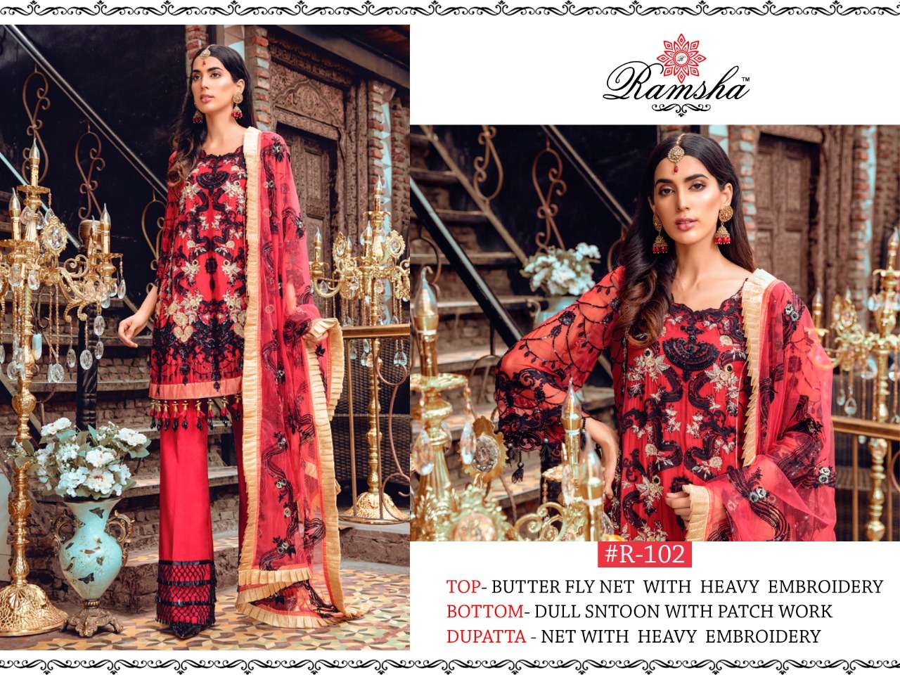About this product: Ramsha Present R-102 Net Salwar Suits Pakistani Beautiful Fancy Colorful Stylish Party Wear Dresses At Wholesale Price. The manufacturer is well known and the quality is pre-tested and checked.