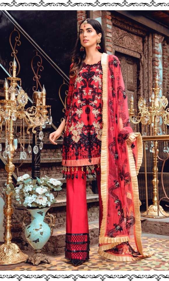Home Dresses Original Indian Dress Ramsha Present R-102 Net Salwar Suits in Crimson Colour