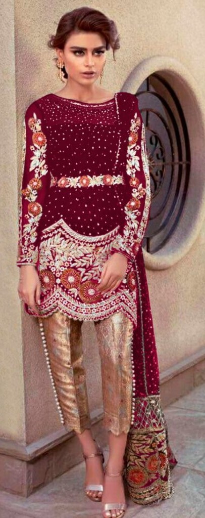 Home Dresses Original Indian Dress Ramsha Present R-120-C NX Series Georgette Salwar Suits in Maroon Colour
