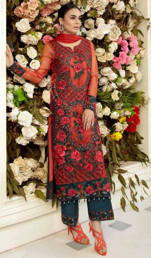 Ramsha Present R-325 Georgette Salwar Suits in Orange Colour