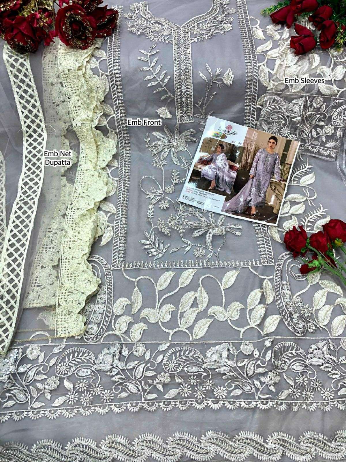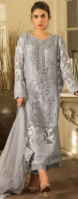 Ramsha Present R-400 Series Net Salwar Suit in Gray Colour