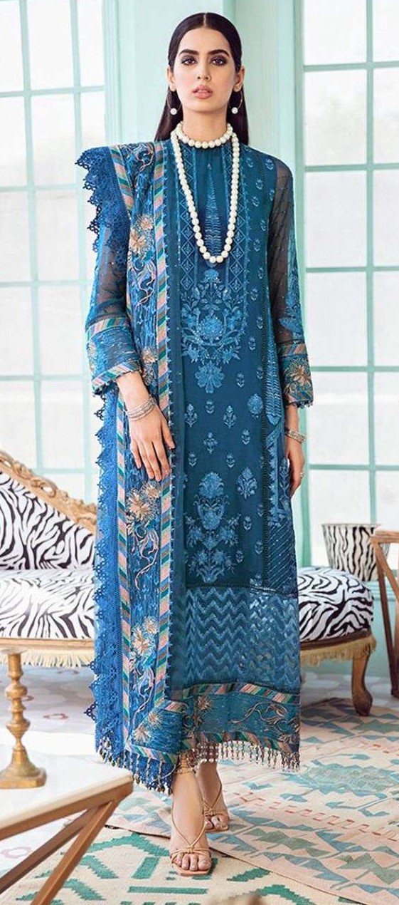 Ramsha Present R-402 Series Net Salwar Suits in Azure Blue Colour