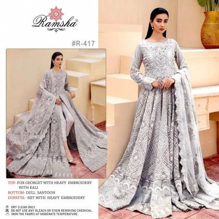 Ramsha Present R-417 Series Georgette Salwar Suits in Silver Colour