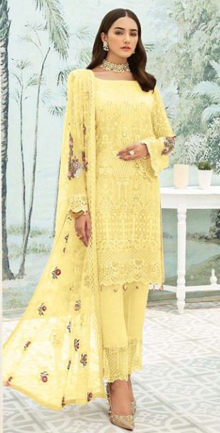 Ramsha Present Ramsha Hit Design R-501-E Series Salwar Suit in Yellow Colour