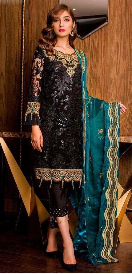 Home Dresses Original Indian Dress Ramsha Present Vol-2 R-176 Embroidery Salwar Suit in Black Colour