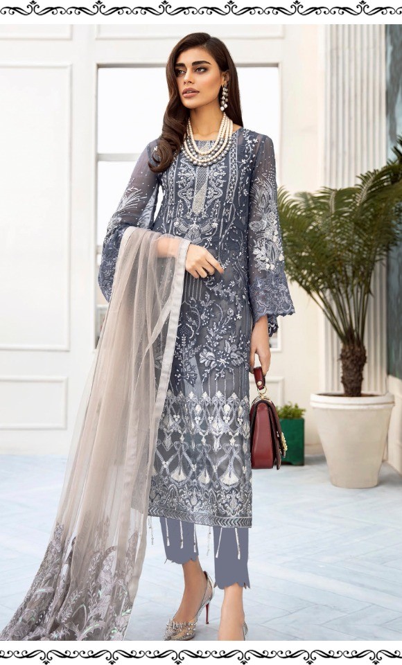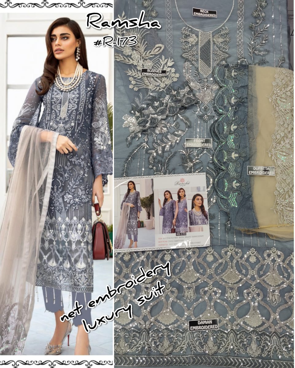 Ramsha R-173 Pakistani Salwar Kameez with heavy Embroidey in Grey Colour