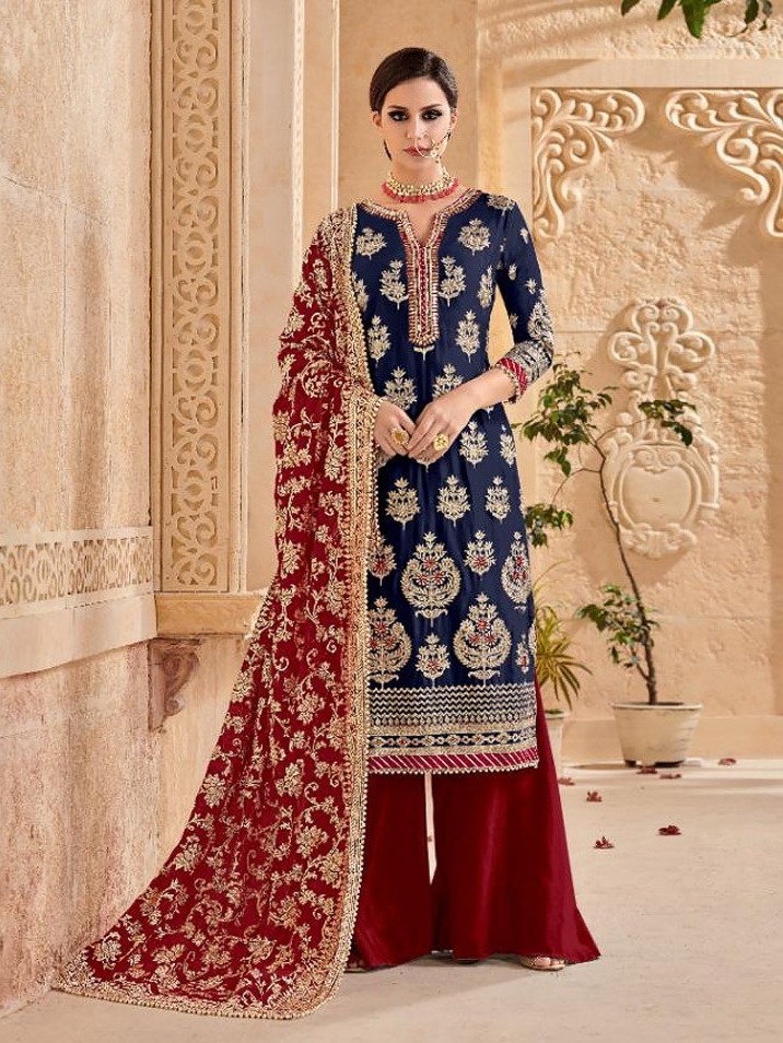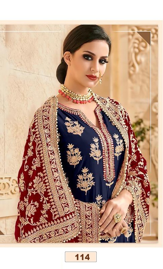 Home Dresses Original Indian Dress Mutiyaar gold – 114, Red and Blue Heavy quality Georgette Embroidery With Heavy Work & lace