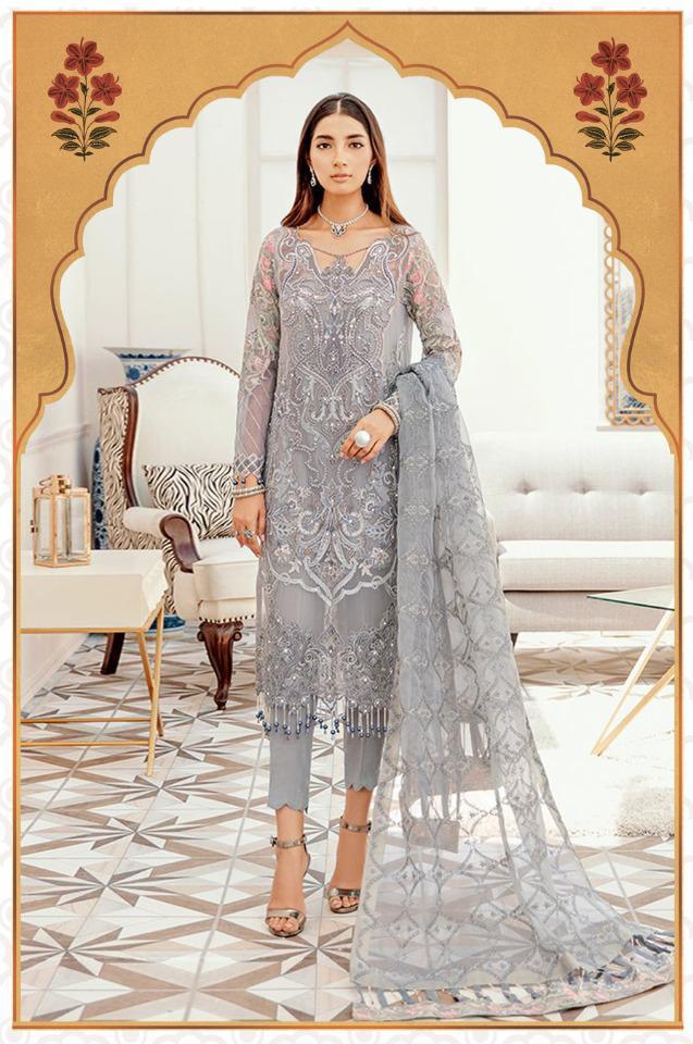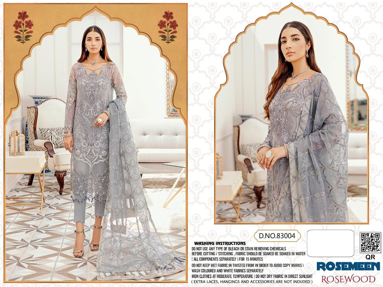Home Dresses Original Indian Dress Rosemeen D No-83004 Pakistani Designer Luxury Party Wear Suit in Gray Colour