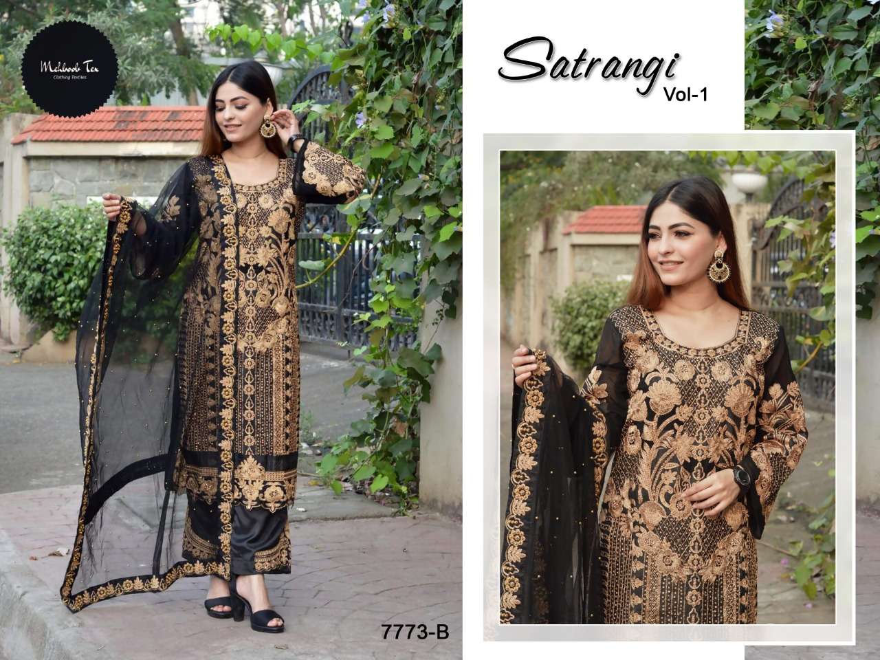 Satrangi Vol-1 by Mehboob Tex D.no.7773-B Series Georgette Salwar Suits in Black Colour