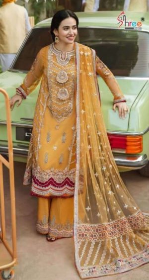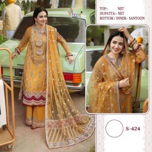 Shree Fabs Present S-424 Series Net Salwar Suit in Gold Colour