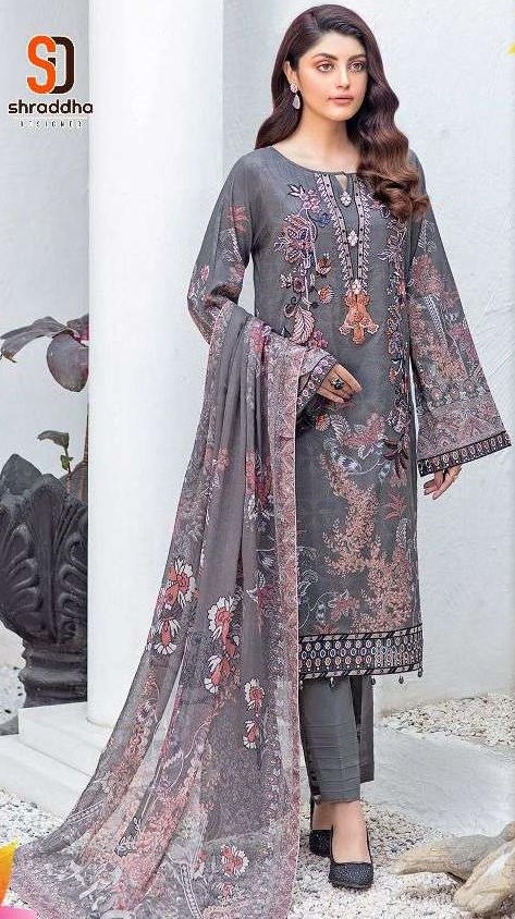 Shraddha Designer Present Marjjan Vol-3 Design 3006 Cotton Salwar Suit in Gray Colour