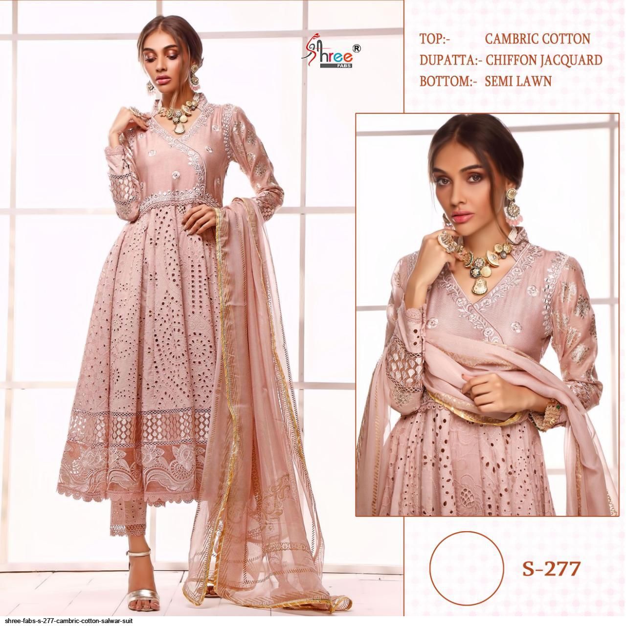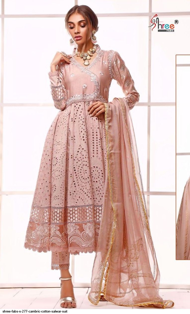 Shree Fabs Present S-277 Series Cambric Cotton Salwar Suit in Creamy Colour
