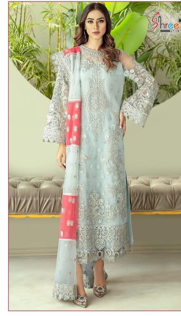 Shree Fabs Present S-300 Series Georgette Salwar Suit in Baby Blue Colour