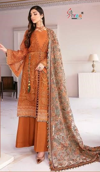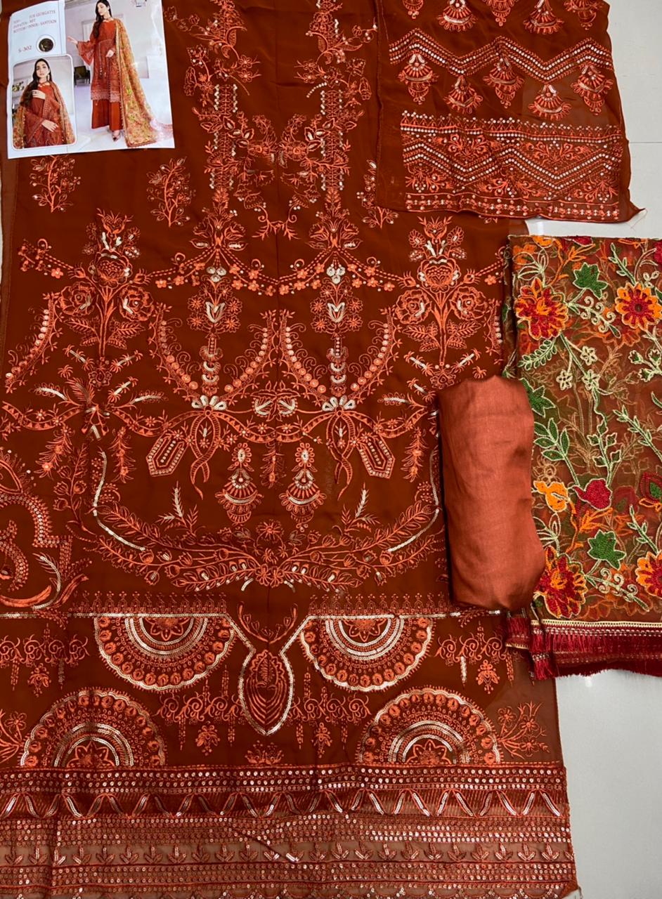 Shree Fabs Present S-302 Series Georgette Salwar Suit in Barn Red Colour