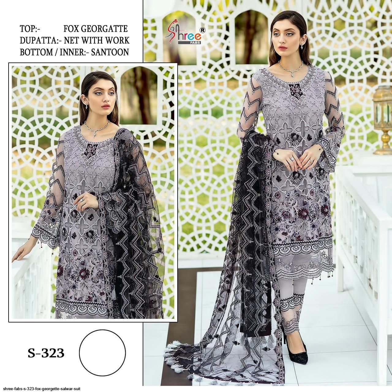 Shree Fabs Present S-323 Series Georgette Salwar Suit in Gray Colour