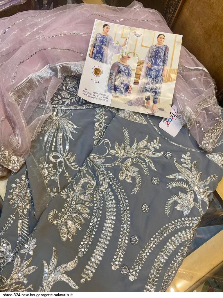 Shree Fabs Present S-324 Series Georgette Salwar Suit in Pigeon Colour
