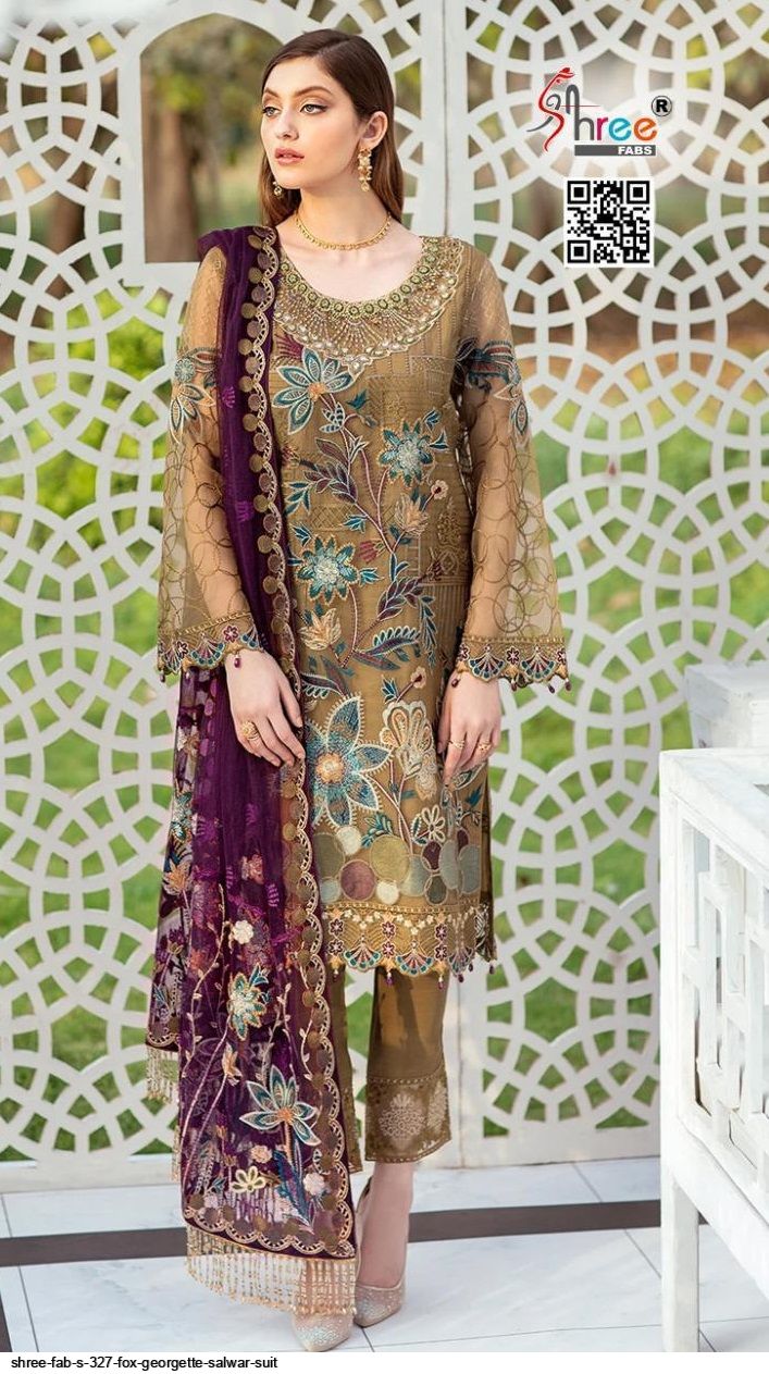 Shree Fabs Present S-327 Series Georgette Salwar Suit in Flax Colour