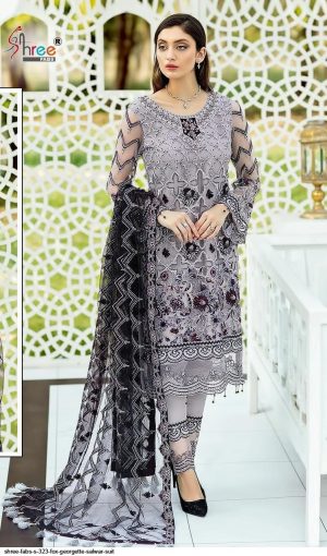 Shree Fabs Present S-323 Series Georgette Salwar Suit in Gray Colour