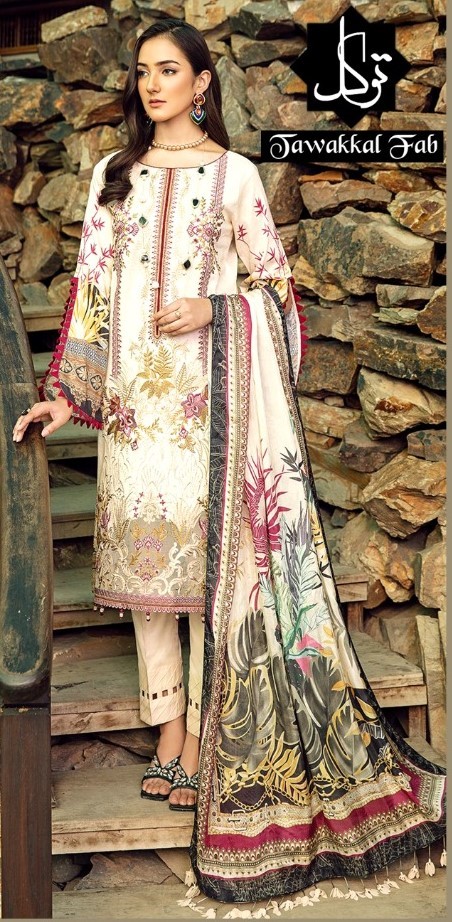 Tawakkal Fab Series Present Mahira Luxery Lawn D.No.01 in White Colour