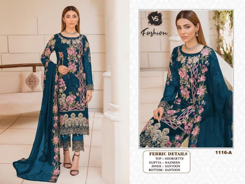 Home Dresses Original Indian Dress VS Fashion Hit Design VS-1116-A Series Suit in Teal Blue Colour