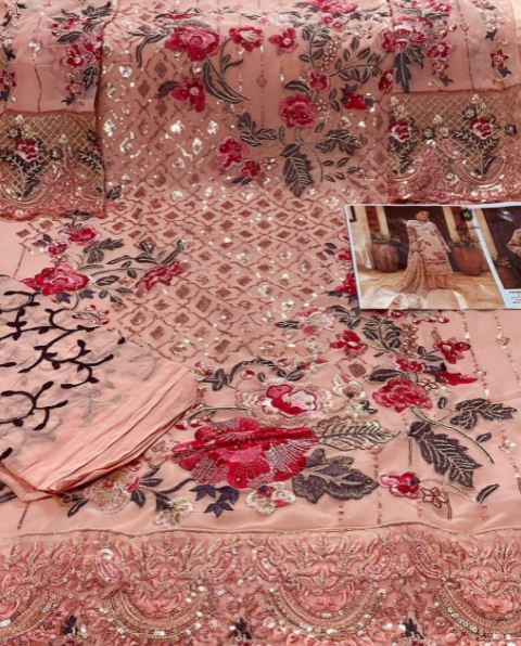 VS Fashion Present VS Fashion D.no.154 Series Georgette Suit in Salmon Colour