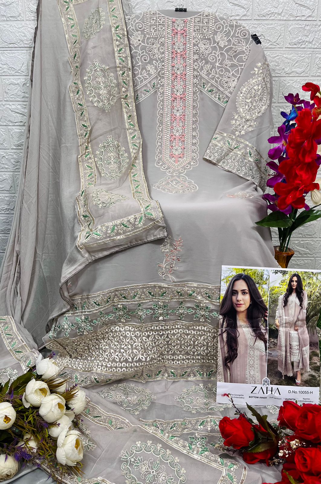 Zaha 10055 H Malika H Vol 3 Pakistani Suits in Grey Colour