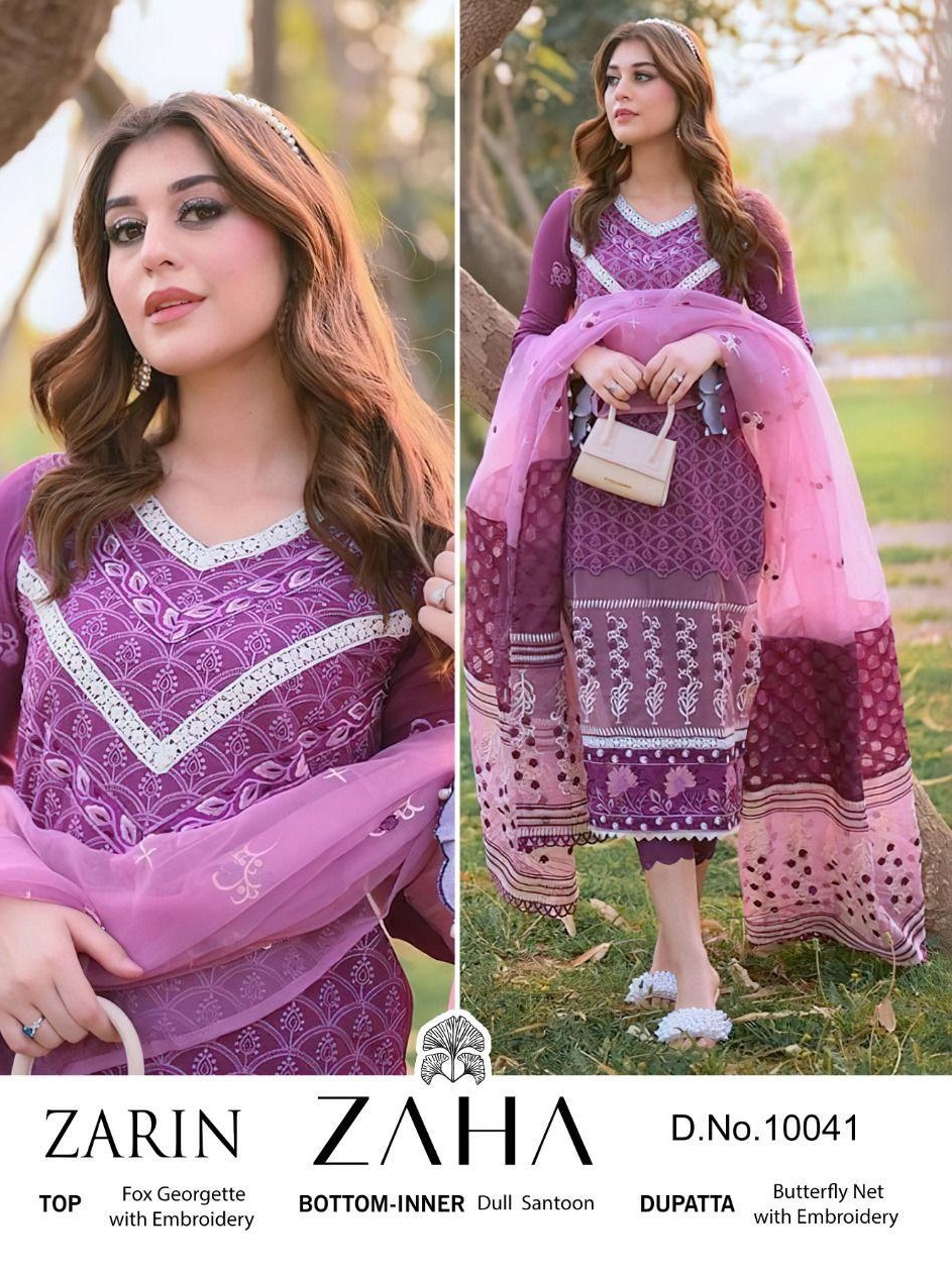 About this product: Zaha Present Zarin D.no.10041 Series Salwar Suit in Beautiful Fancy Colorful Stylish Party Wear Dresses At Wholesale Price. The manufacturer is well known and the quality is pre-tested and checked. For Booking, you can Call or WhatsApp us on +91-90167 57806.