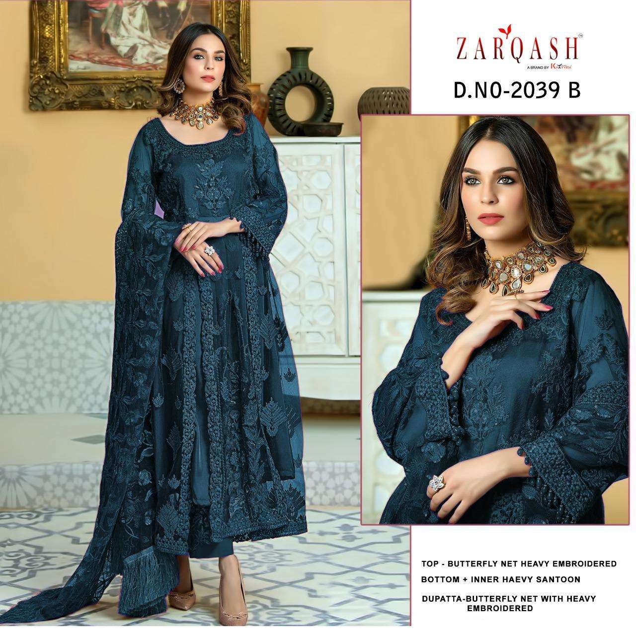 About this product: Zarqash Fashion Present Firdous 2039-B Pakistani Beautiful Fancy Colorful Stylish Party Wear Dresses At Wholesale Price. The manufacturer is well known and the quality is pre-tested and checked.
