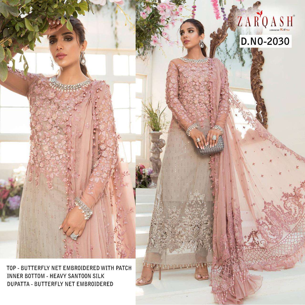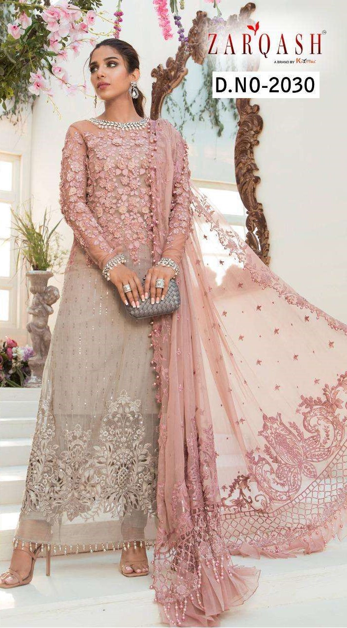 About this product: Zarqash Hit Design.No.2030 Pakistani Beautiful Fancy Colorful Stylish Party Wear Dresses At Wholesale Price. The manufacturer is well known and the quality is pre-tested and checked.Zarqash Fashion is one of the Leading Manufacturer in India giving the Best Prices and Assured Quality Products. Besides giving the Best Quality it also has Cheapest Rate.