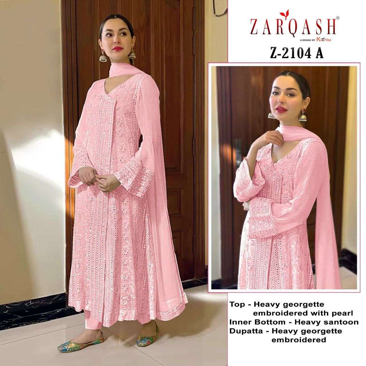 Home Dresses Original Indian Dress Zarqash Present Florence Hit Design Z-2104-A Series Suit in Pink Colour
