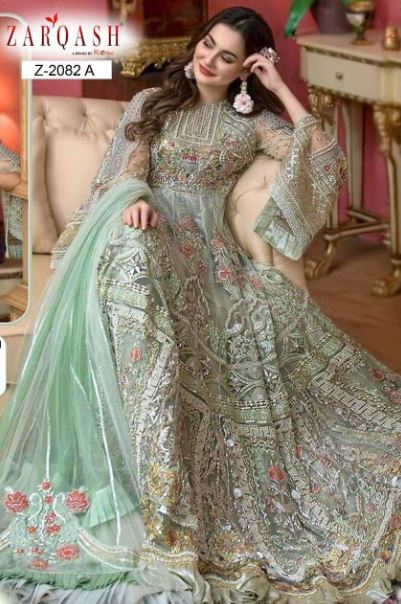 Zarqash Present Jashan Vol-2 Z-2082-A Series Net Salwar Suit in Sage Green Colour