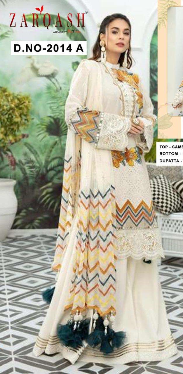 Home Dresses Original Indian Dress Zarqash Present Libaas D.No.2014-A Series Salwar Suits in White Colour