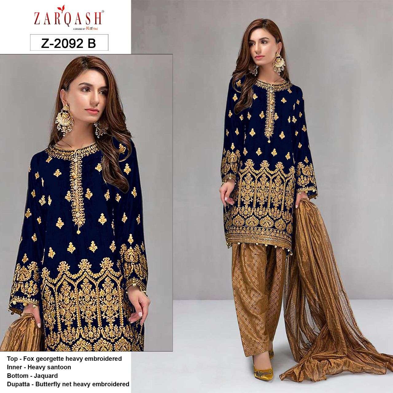 About this product: Zarqash Present Mariya.B Royal Soiree Z-2092-B Series Salwar Suit in Beautiful Fancy Colorful Stylish Party Wear Dresses At Wholesale Price. The manufacturer is well known and the quality is pre-tested and checked. For Booking, you can Call or WhatsApp us on +91-90167 57806.