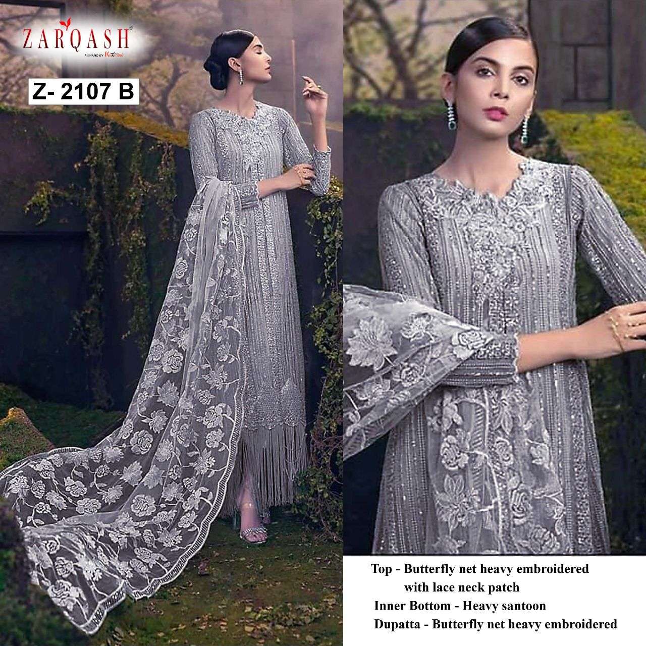About this product: Zarqash Present Sana Safinaz Hit Design Z-2107-B Series Suit in Beautiful Fancy Colorful Stylish Party Wear Dresses At Wholesale Price. The manufacturer is well known and the quality is pre-tested and checked. For Booking, you can Call or WhatsApp us on +91-90167 57806.