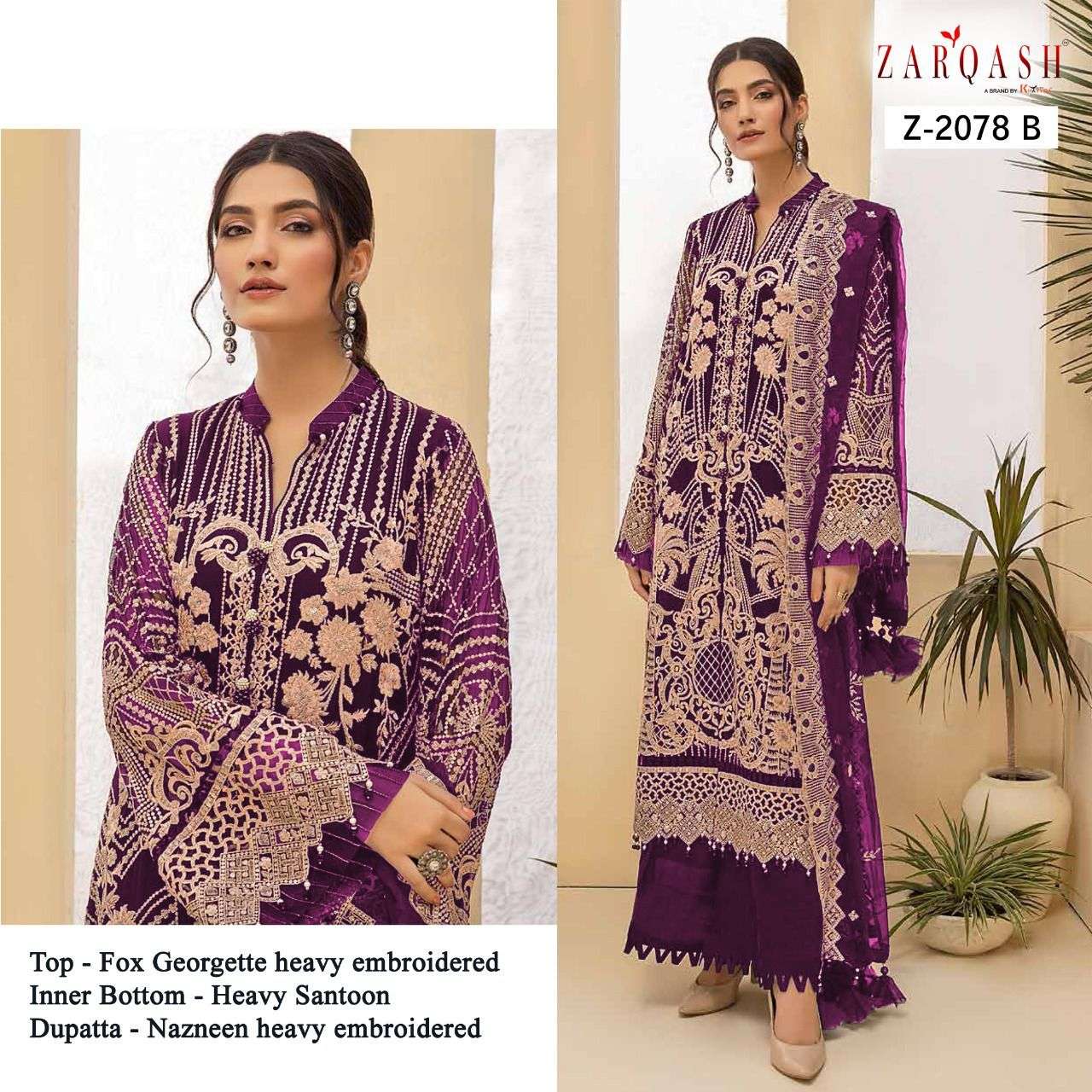 About this product: Zarqash Present Zarqash Hit Design Z-2078-B Series Salwar Suit in Beautiful Fancy Colorful Stylish Party Wear Dresses At Wholesale Price. The manufacturer is well known and the quality is pre-tested and checked. For Booking, you can Call or WhatsApp us on +91-90167 57806.