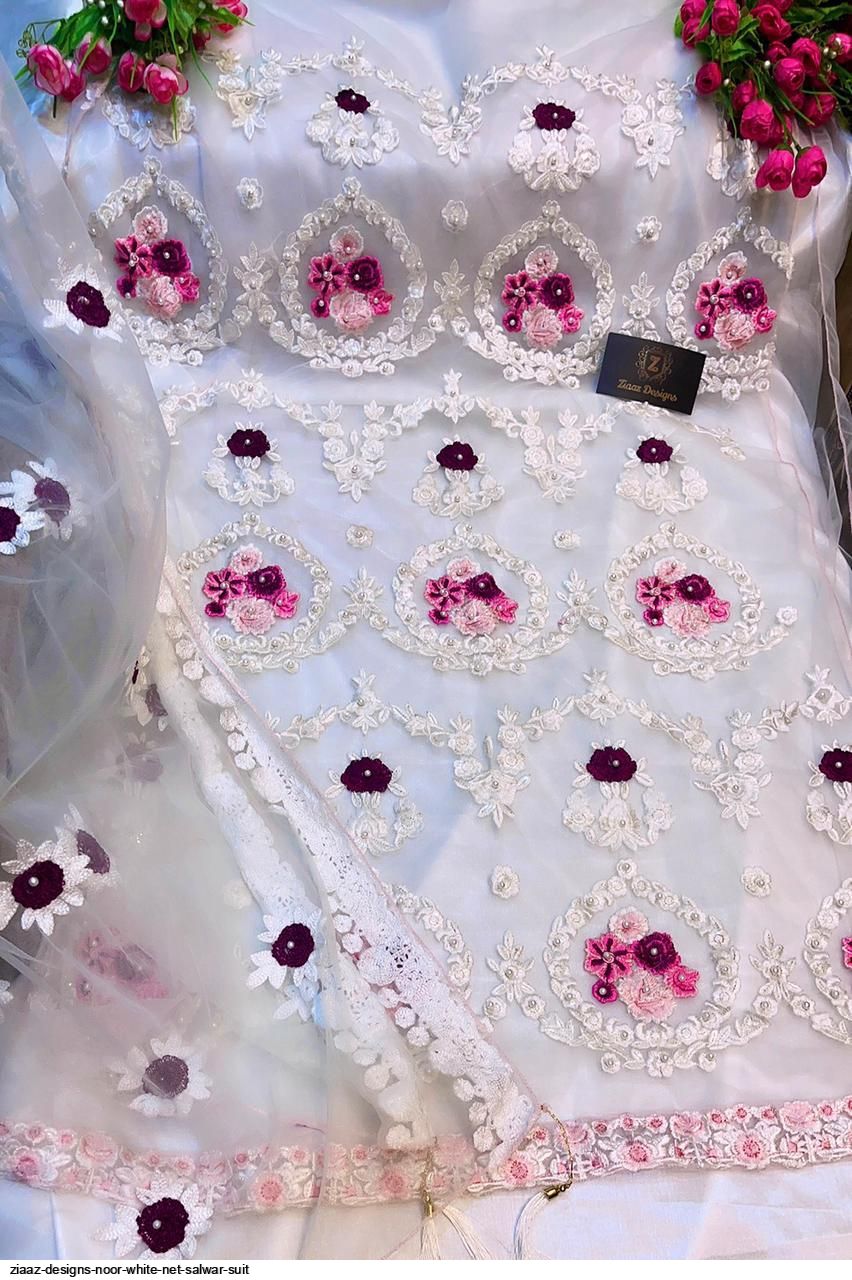 Ziaaz Design Present Noor Cotton Series Salwar Suit in White Colour