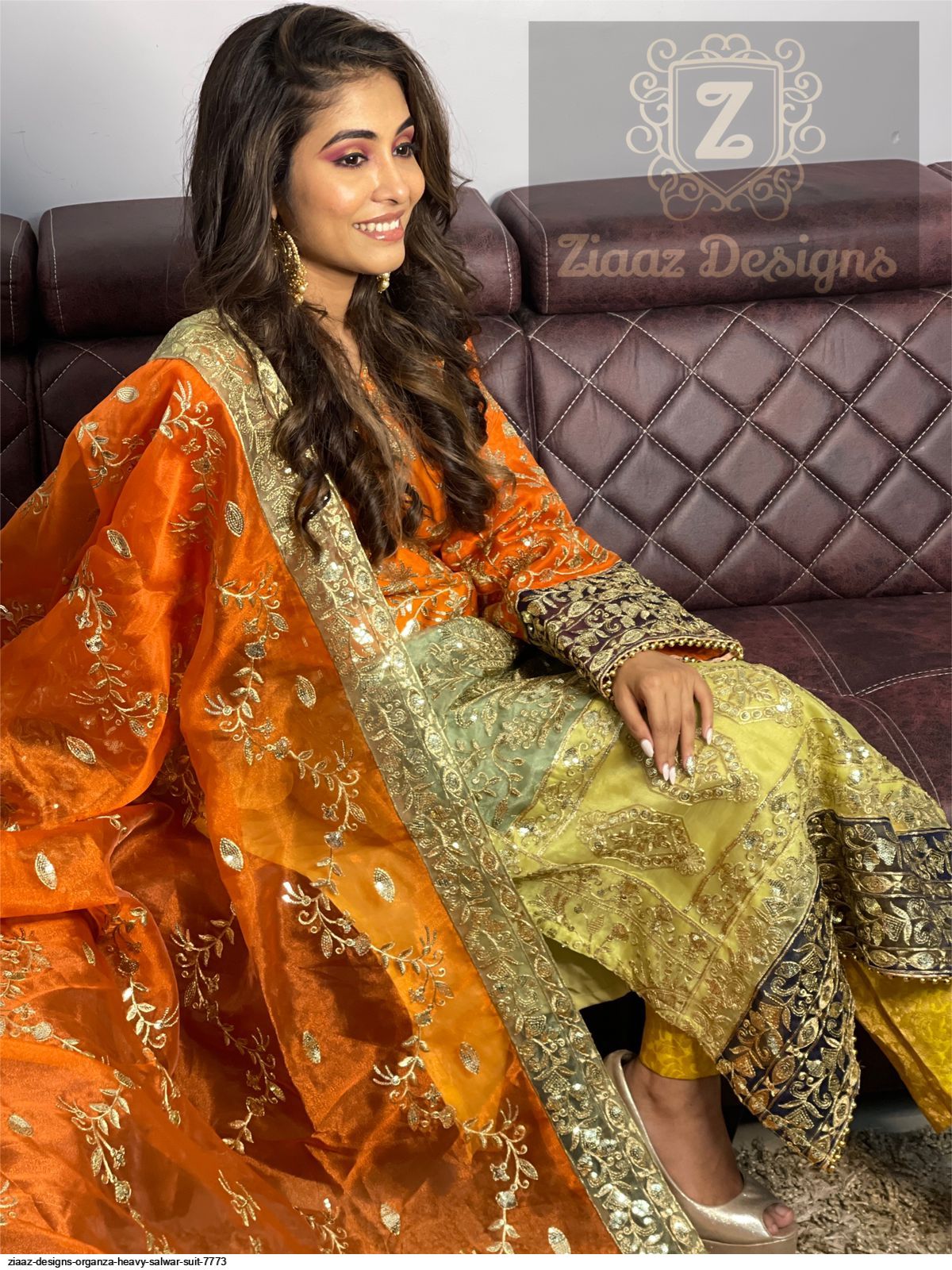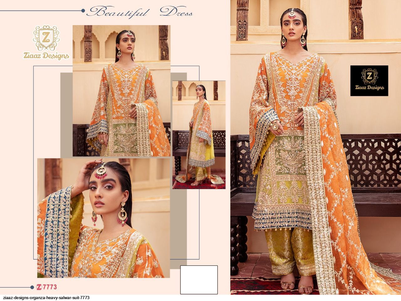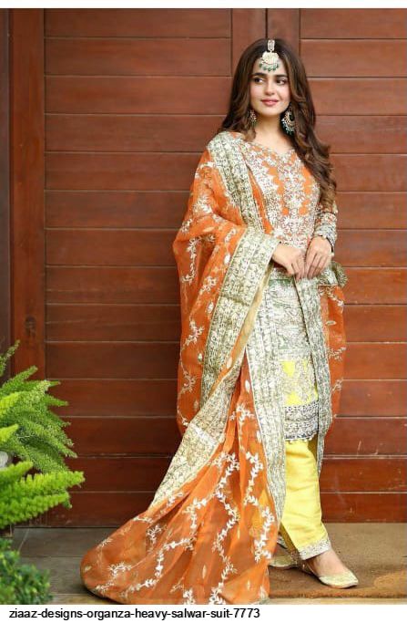 Ziaaz Design Present Ziaaz D.No.7773 Series Organza Salwar Suit in Orange Colour