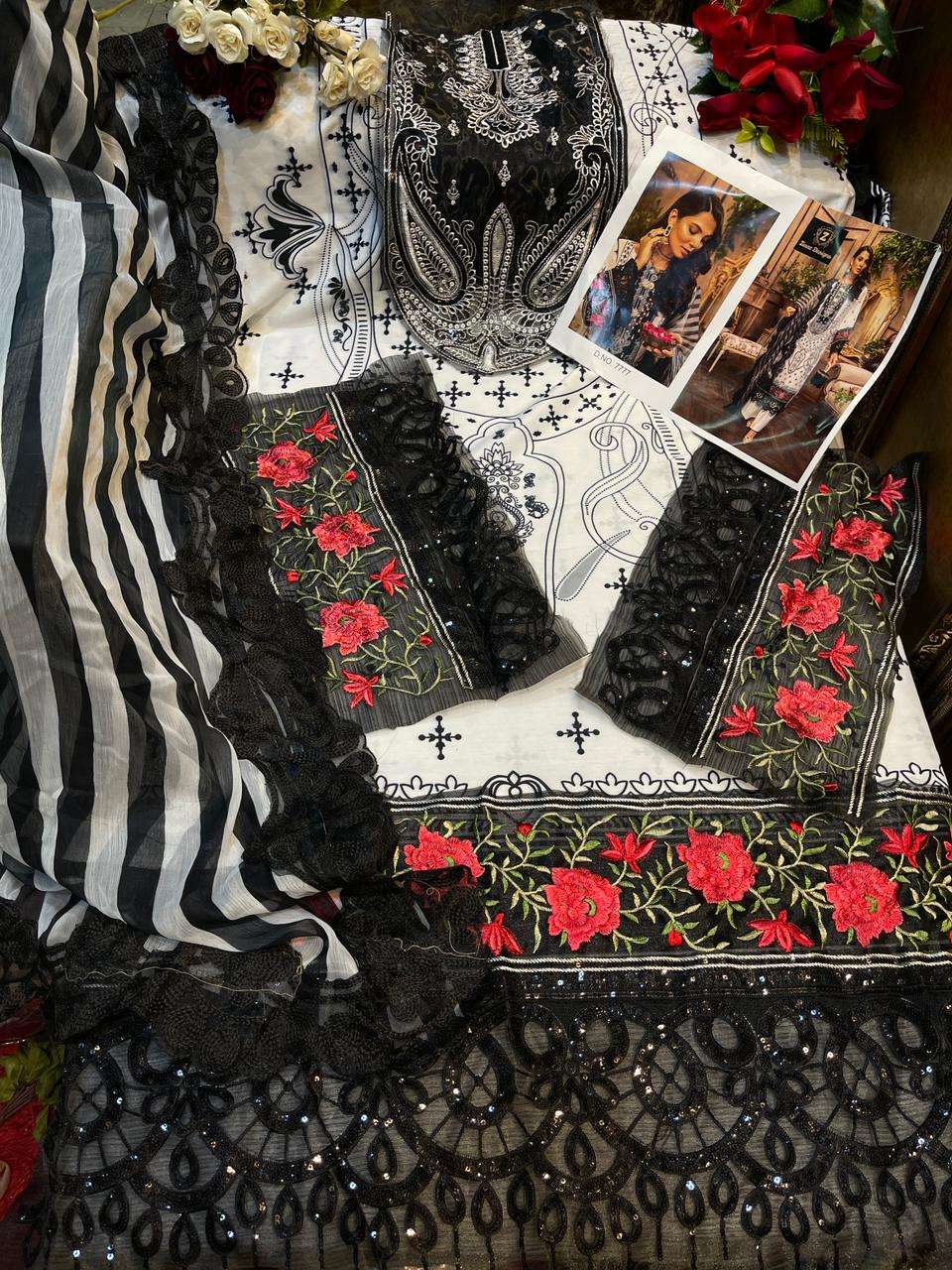 Ziaaz Design Present Ziaaz Hit D.No.7777 Series in White & Black Colour