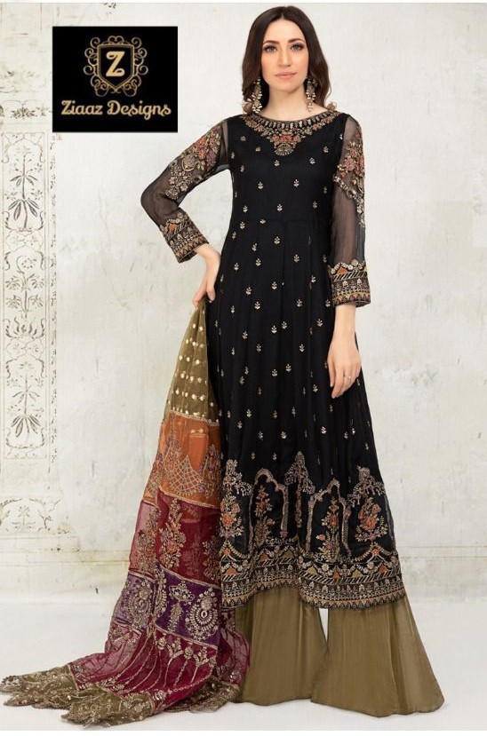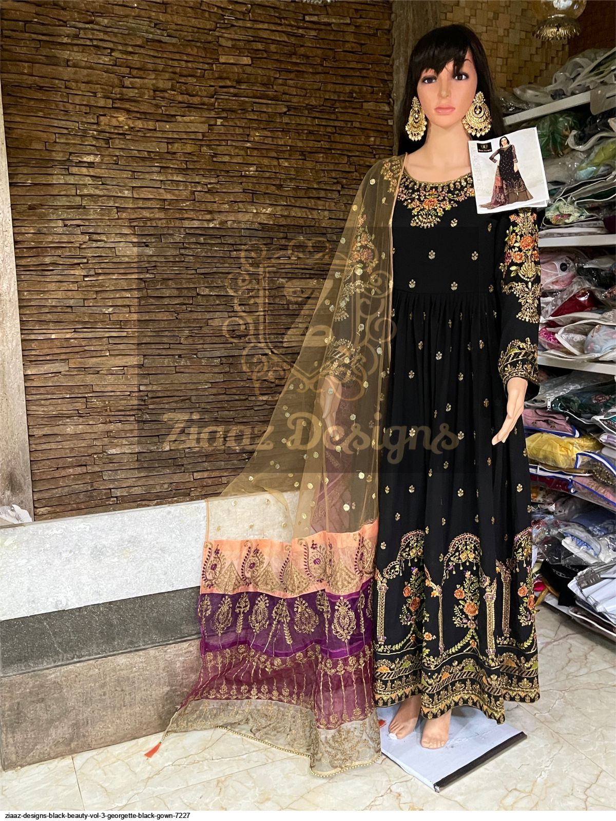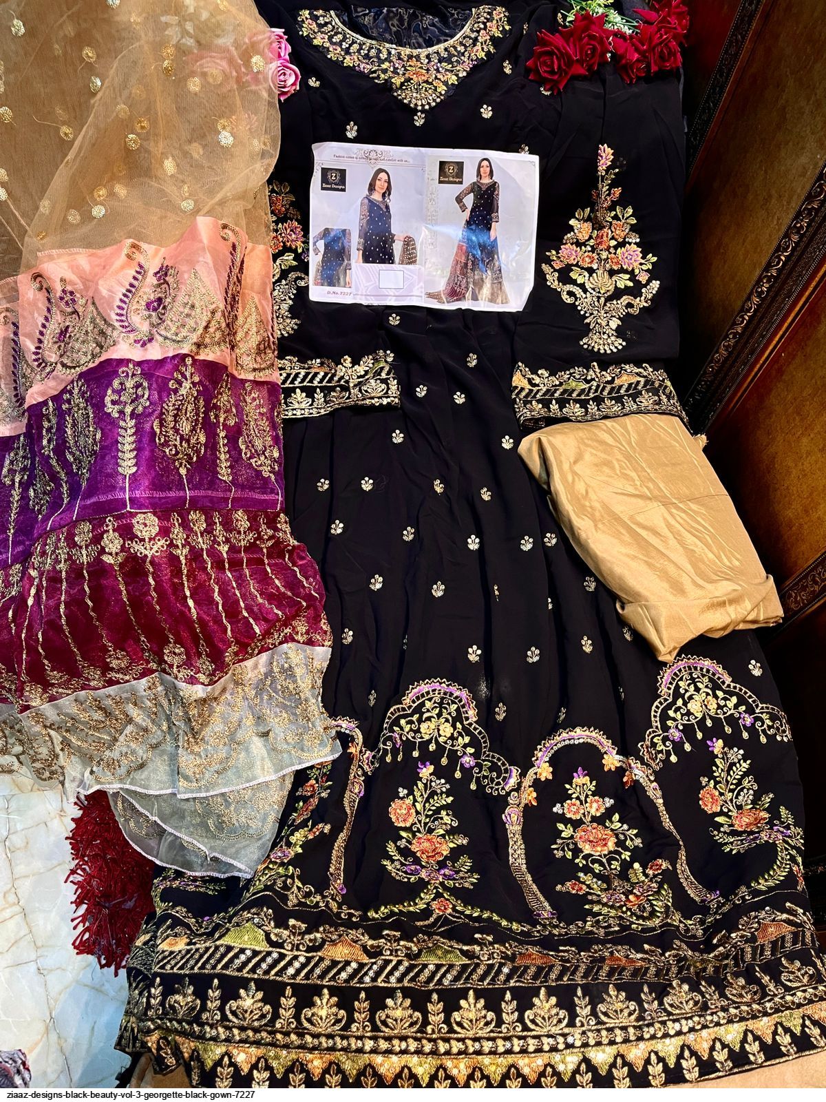 Ziaaz Design Present Ziaaz Vol-3 D.No.7227 Series Georgette Suit in Black Colour
