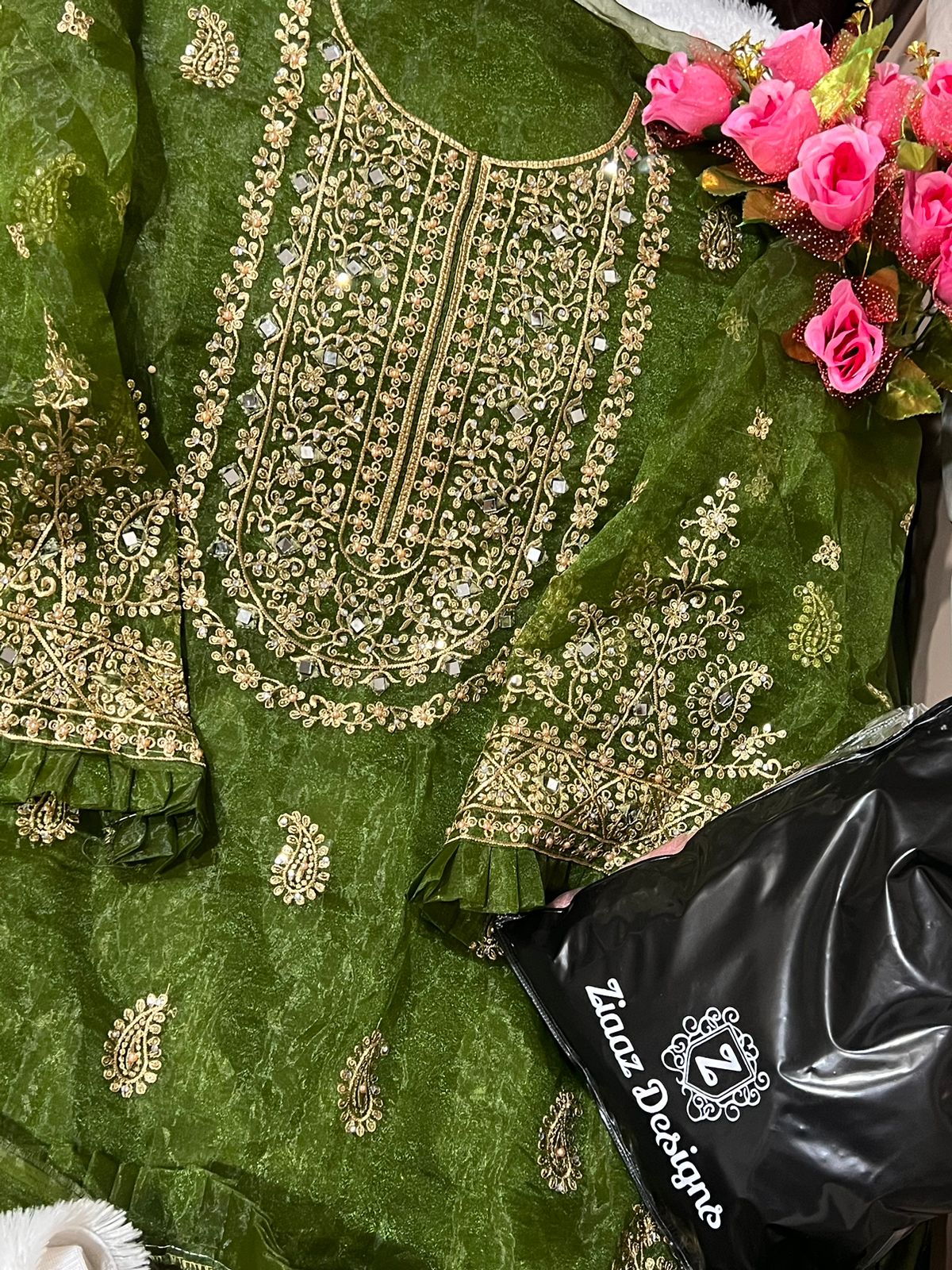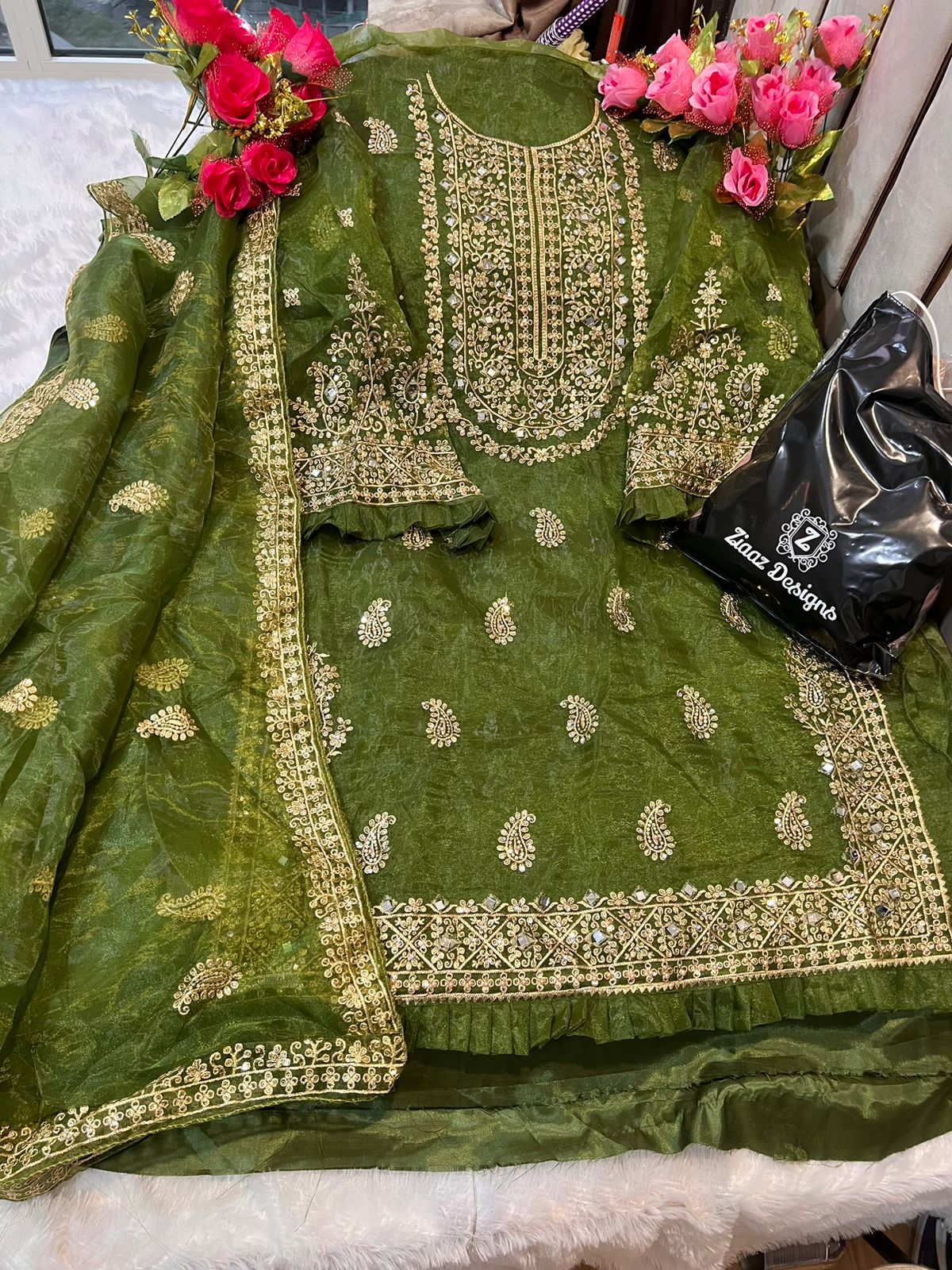 | DETAILS | ORGANZA EMBROIDERED MIRROR WORK SEMI STITCHED KAMEEZ WITH UNSTITCHED SANTOON INNER AND BOTTOMS AND ORGANZA HEAVY WORK EMBROIDERED DUPATTA |