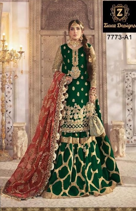 Ziaaz Designs 7773 A1 Green Mariab Mbroidered in Green Colour