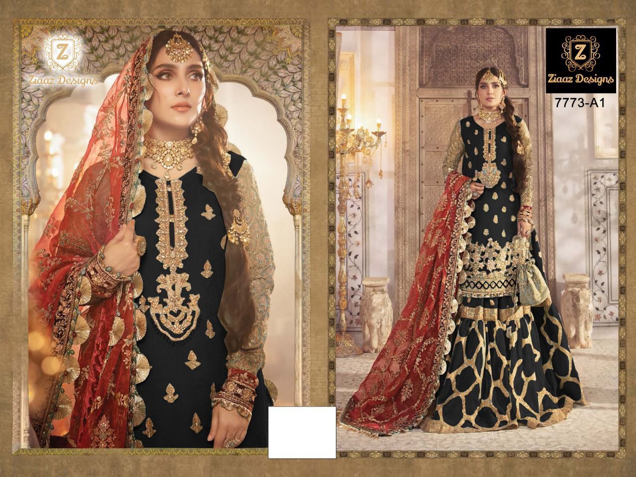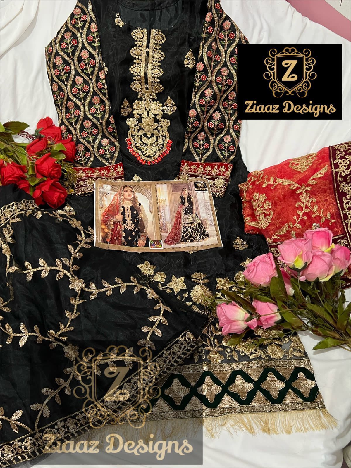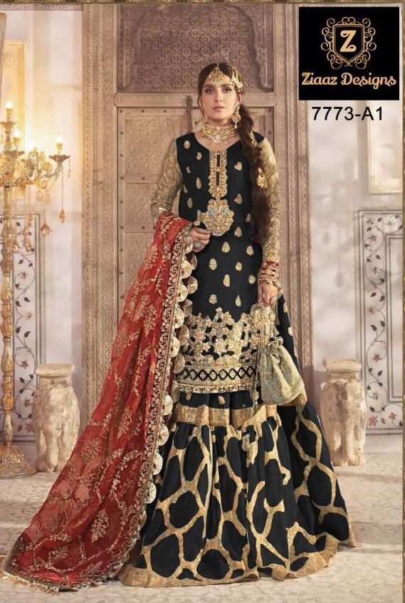 Ziaaz Designs 7773 A1 Mariab Mbroidered Suits in Black Colour