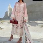 | Fabric Details | Georgette semi-stitched embroidered kameez with pearls on neck, Unstitched santoon inner and bottom, Net Embroidered beautiful dupatta with frills |