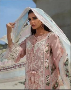 Fabric Details Cotton Embroidered Semi stitched Kameez, cotton unstitched bottoms with patch and Silk embroidered dupatta.